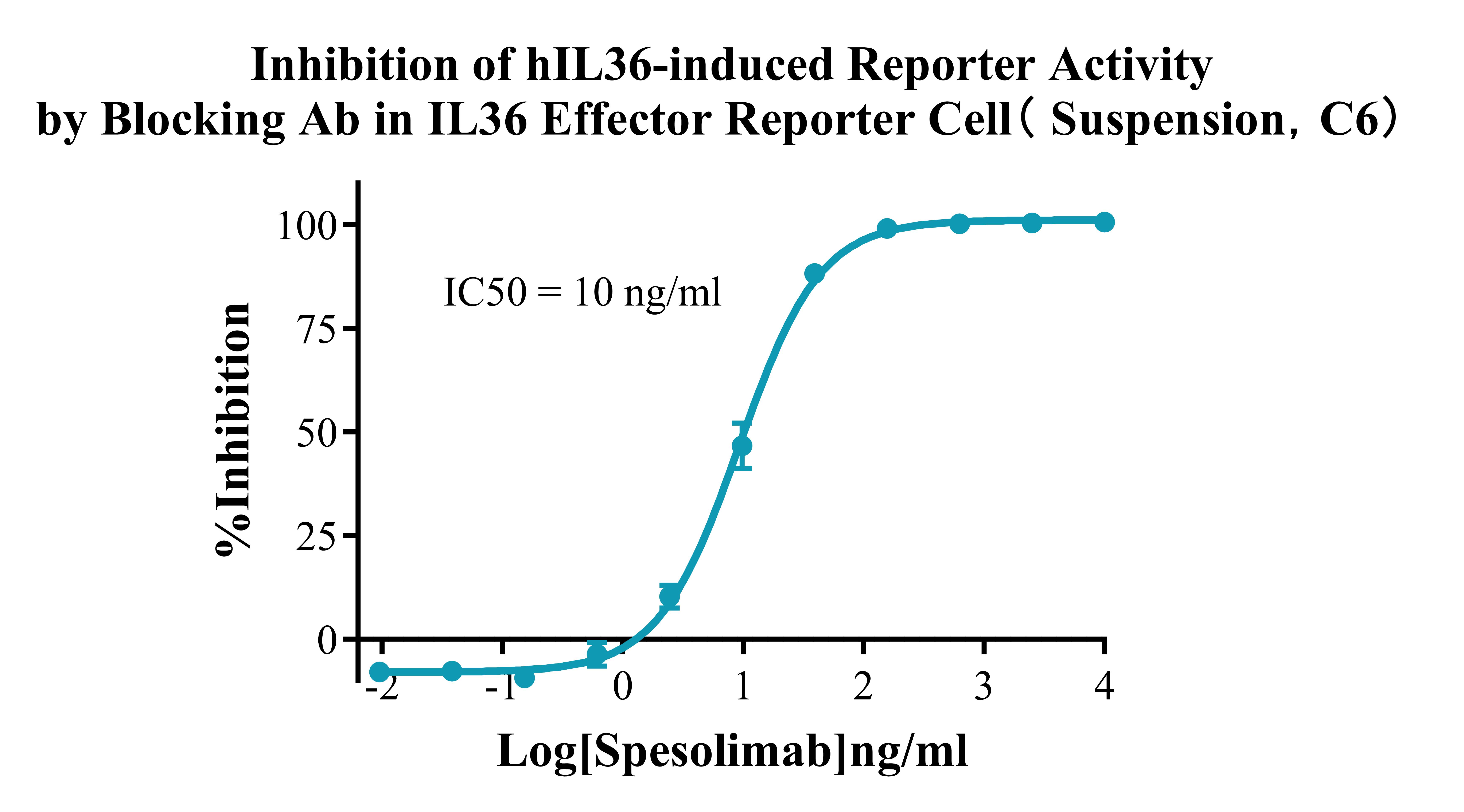 Figure 3. Inhibition of hIL36-induced Reporter Activity by Blocking Ab in IL36 Effector Reporter Cell(Suspension, C6).