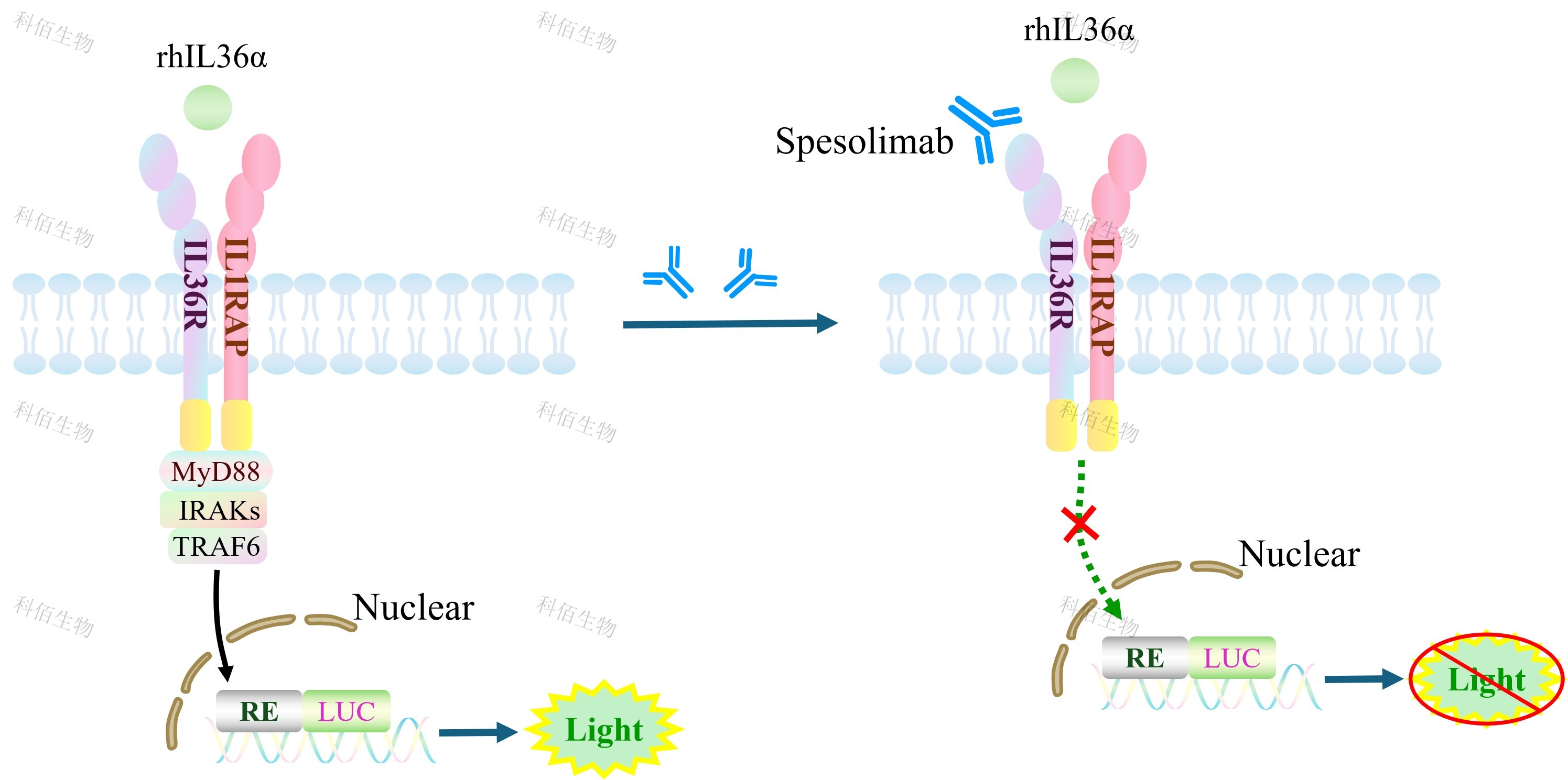 ![]() Figure 1. IL36 Effector Reporter Cell(Suspension) 細(xì)胞模型原理圖 |