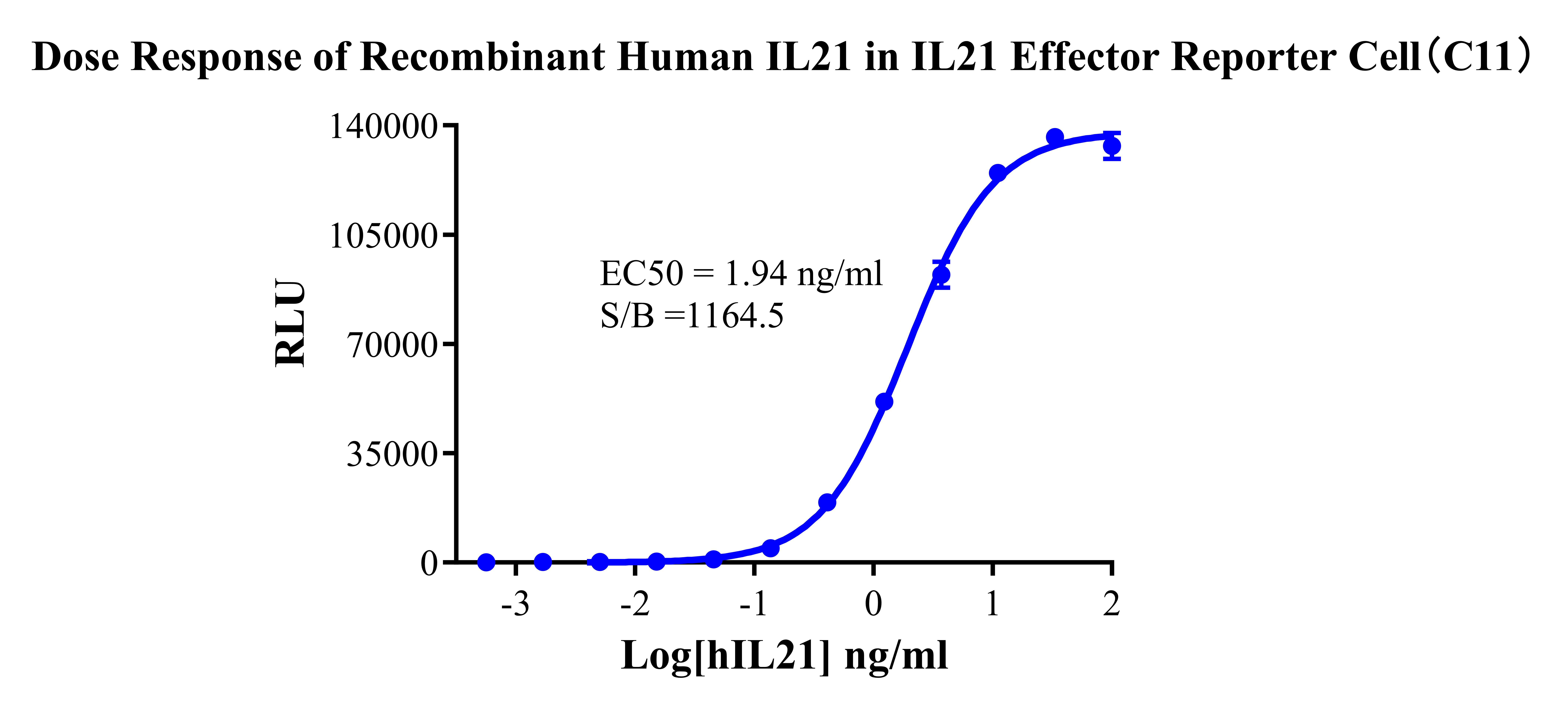 Figure 3.Dose Response of Recombinant Human IL21 in IL21 Effector Reporter Cell (C11). |