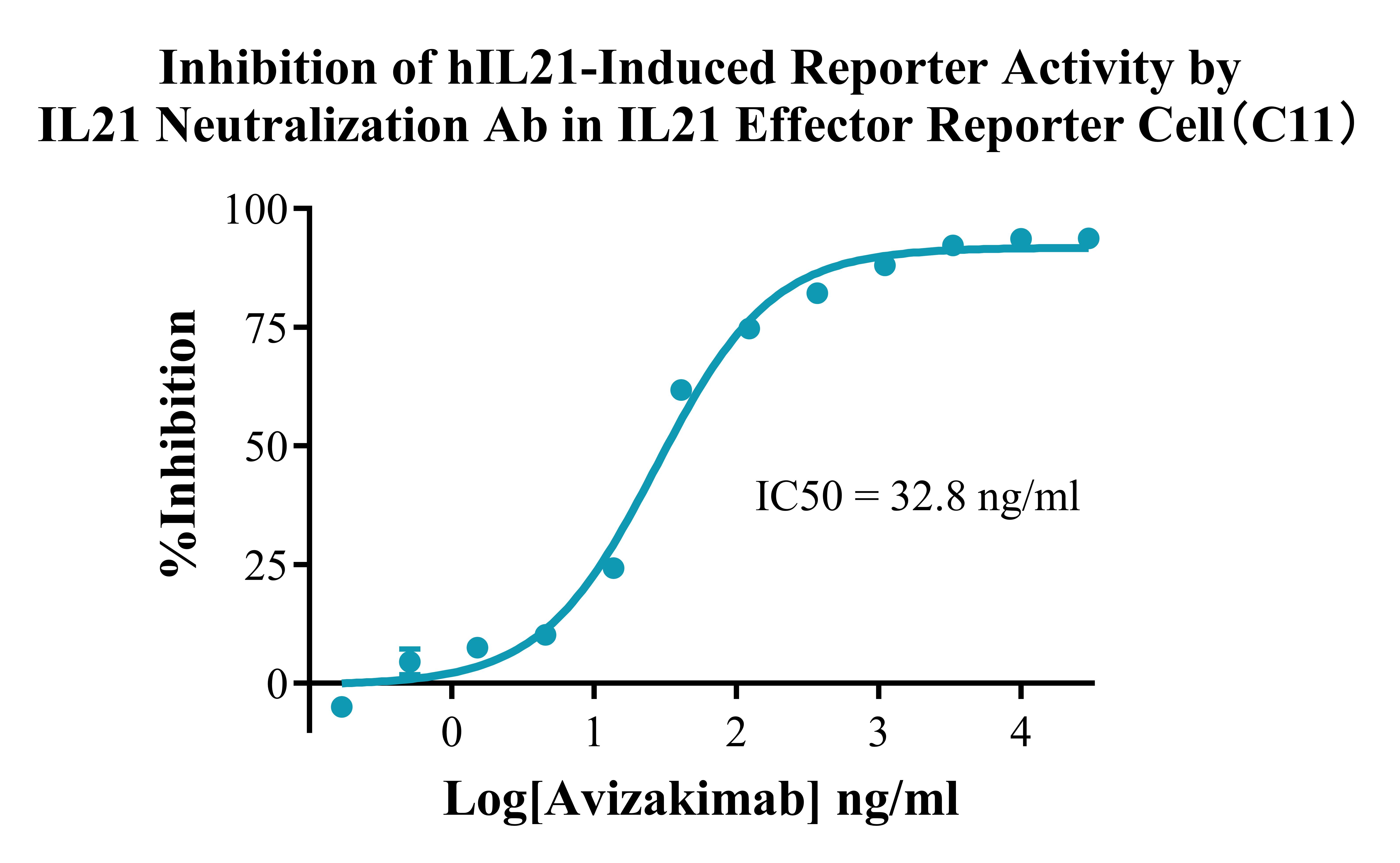 Figure 4.Inhibition of hIL21-Induced Reporter Activity by IL21 Neutralization Ab in IL21 Effector Reporter Cell (C11). |