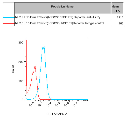 Figure 3. Recombinant hIL2/IL15 Dual Effector(hCD122/hCD132) Reporter Cell constitutively expressing IL2Rβ. |