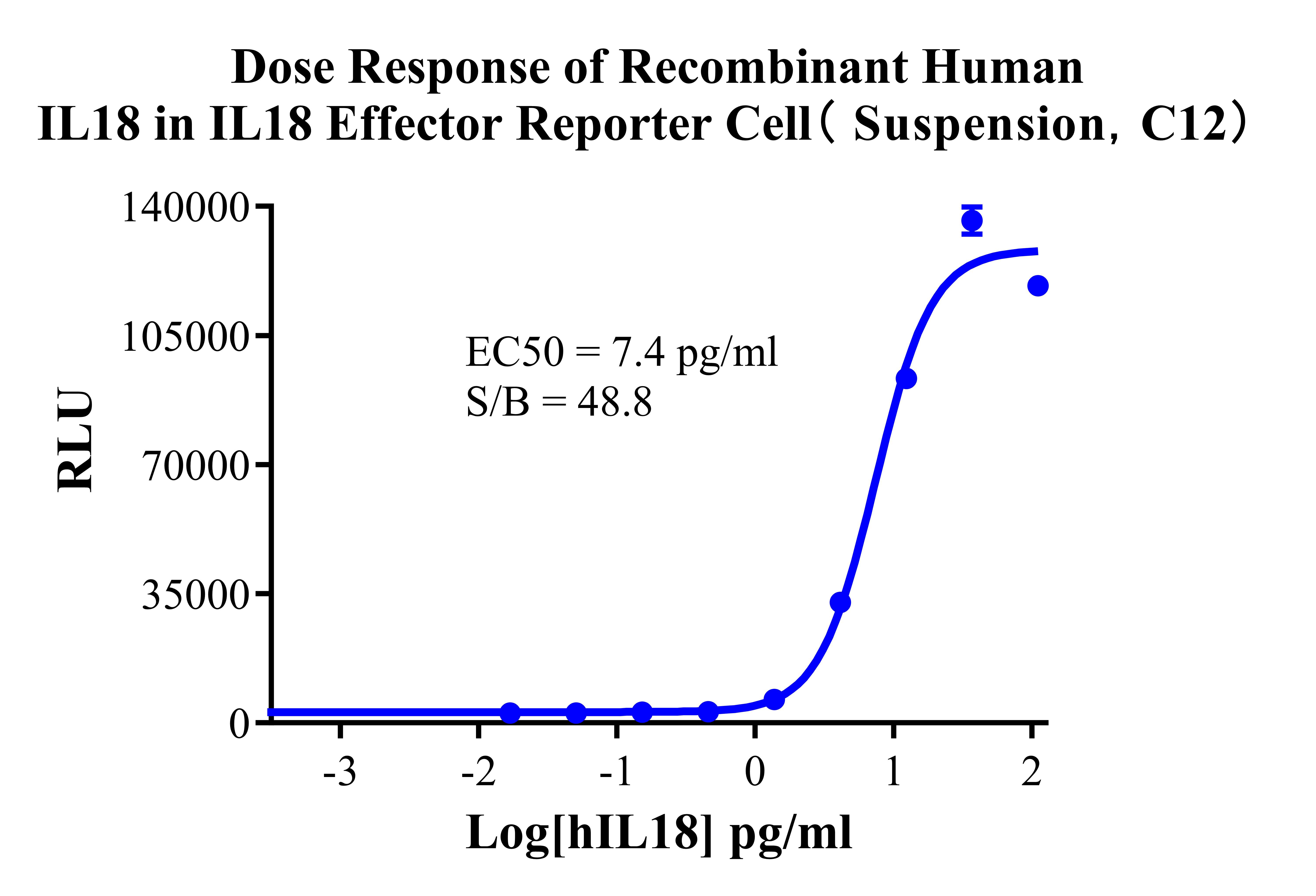 Figure 2.Dose Response of Recombinant Human IL18 in IL18 Effector Reporter Cell(Suspension,C12). |