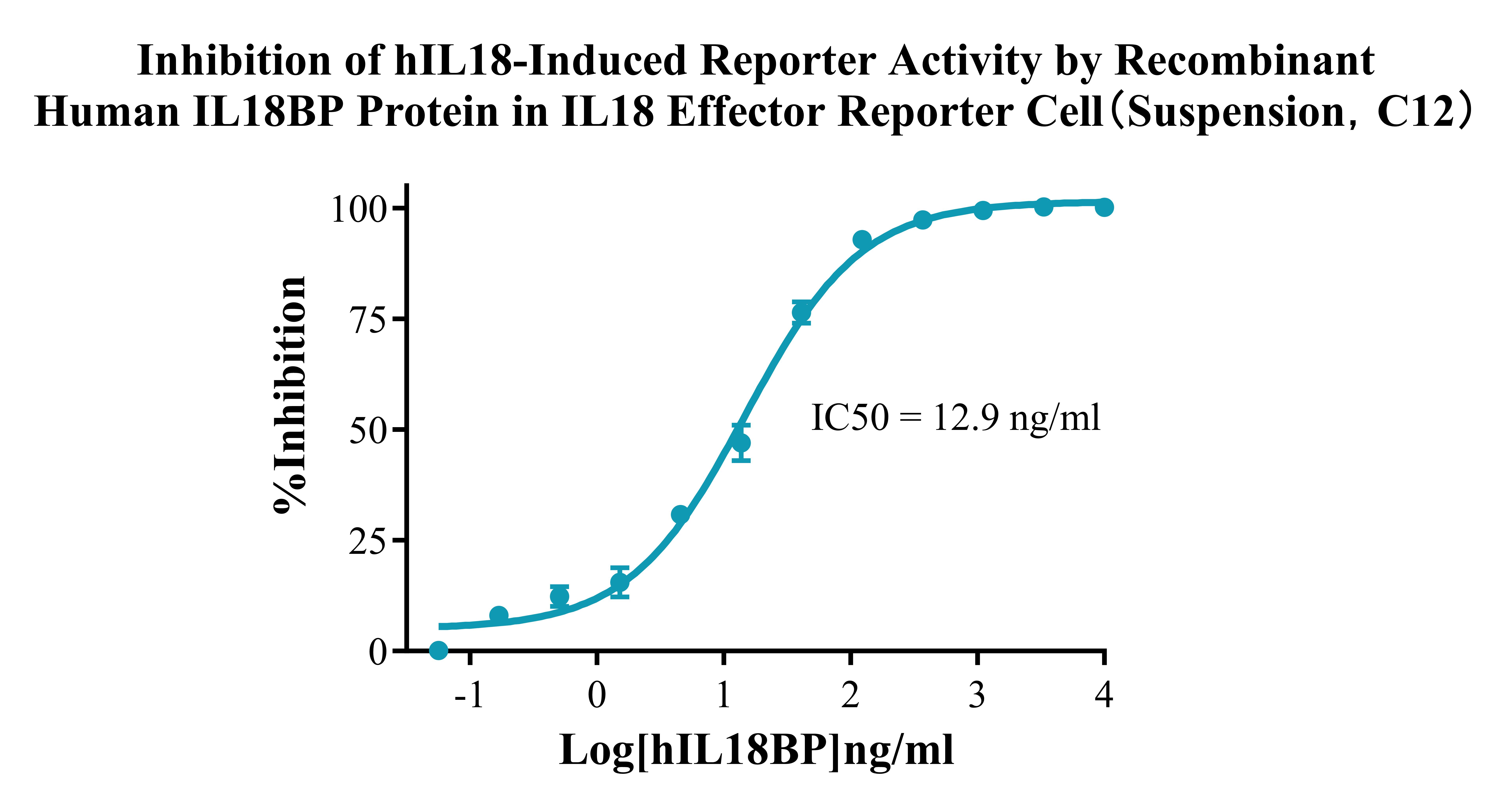 Figure 3.Inhibition of hIL18-Induced Reporter Activity by Recombinant Human IL18BP Protein in IL18 Effector Reporter Cell(Suspension,C12). |