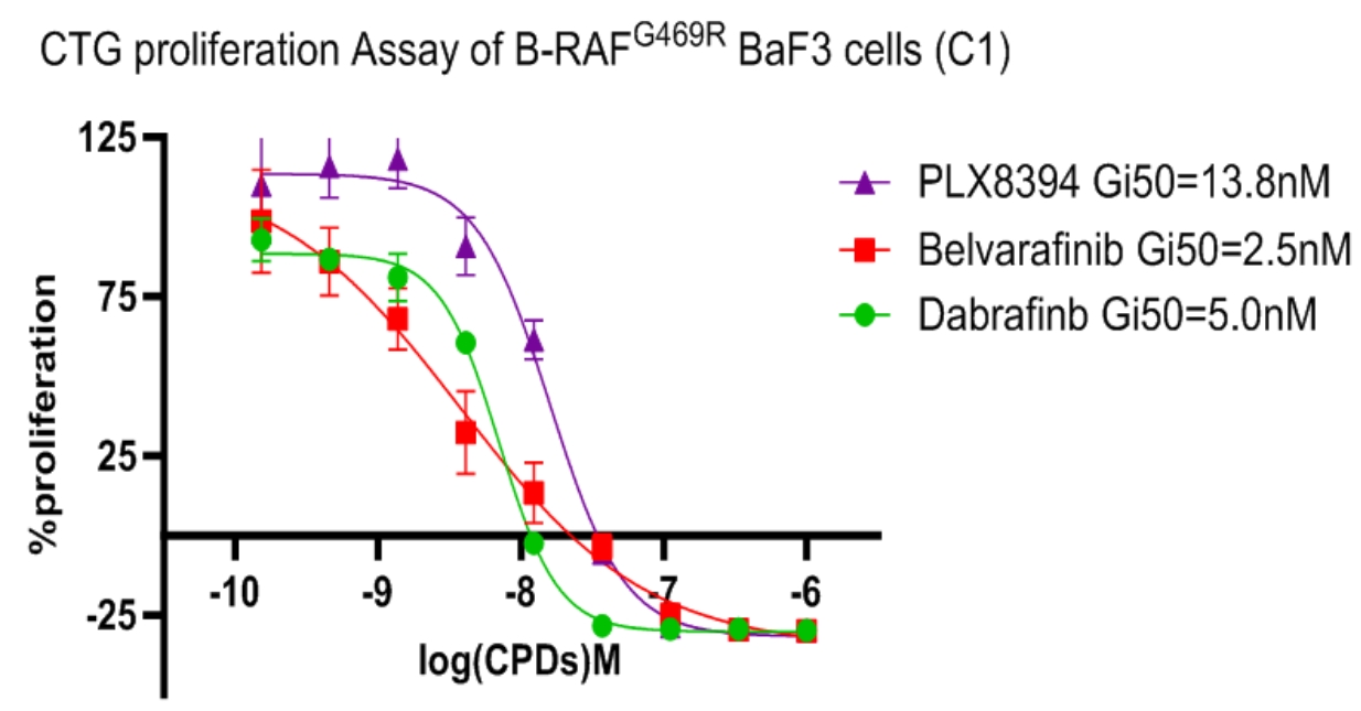 3. Anti-proliferation assay Figure 3. CTG proliferation Assay of B-RAF G469R BaF3 cells (C1). |