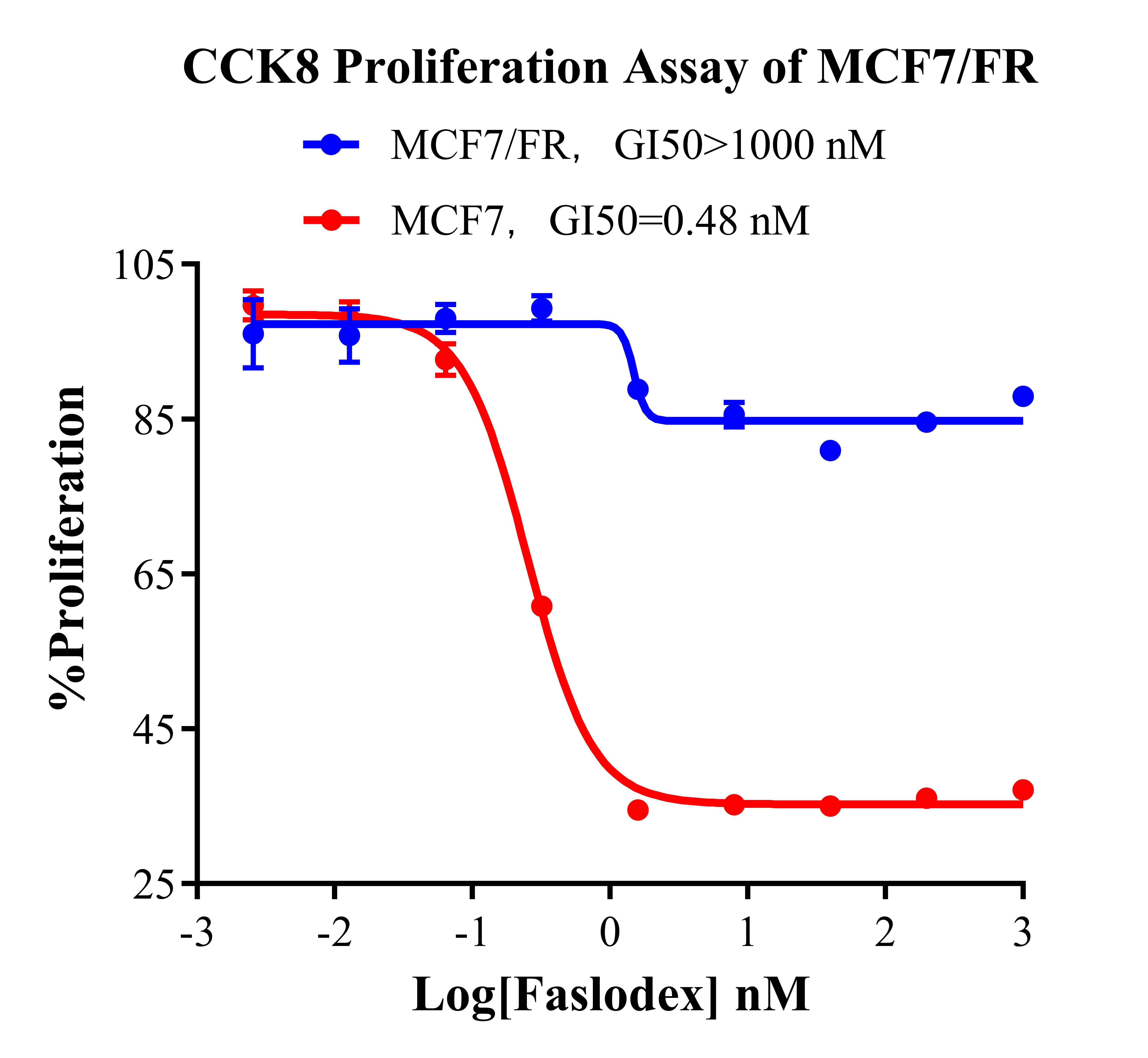 | MCF7/FR 細胞,是經(jīng)過長時間持續(xù)的 Fulvestrant 誘導產(chǎn)生的穩(wěn)定耐藥株。 | |