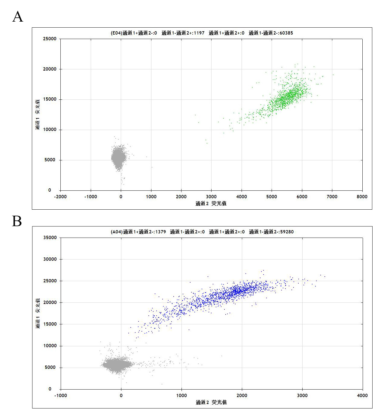 ![]() Figure 2. Sanger of ESR1[D538G](Homozygous,AF%:100) Isogenic MCF7. ![]() Figure 3. A: MCF7 Parental Cell;B:ESR1[D538G](Homozygous,AF%:100)Isogenic MCF7 通道 2 藍色微滴代表 ESR1[D538G]突變陽性,通道 2 綠色微滴代表該位點為陰性野生型 ![]() Figure 4. CTG Proliferation Assays of ESR1 [D538G](Homozygous,AF%:100) Isogenie MCF7. |