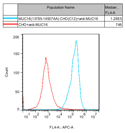 MUC16(13785-14507AA) CHO 細(xì)胞,在 CHO-K1 細(xì)胞的基礎(chǔ)上,穩(wěn)定 表達(dá)人 MUC16(13785-14507AA)。 |