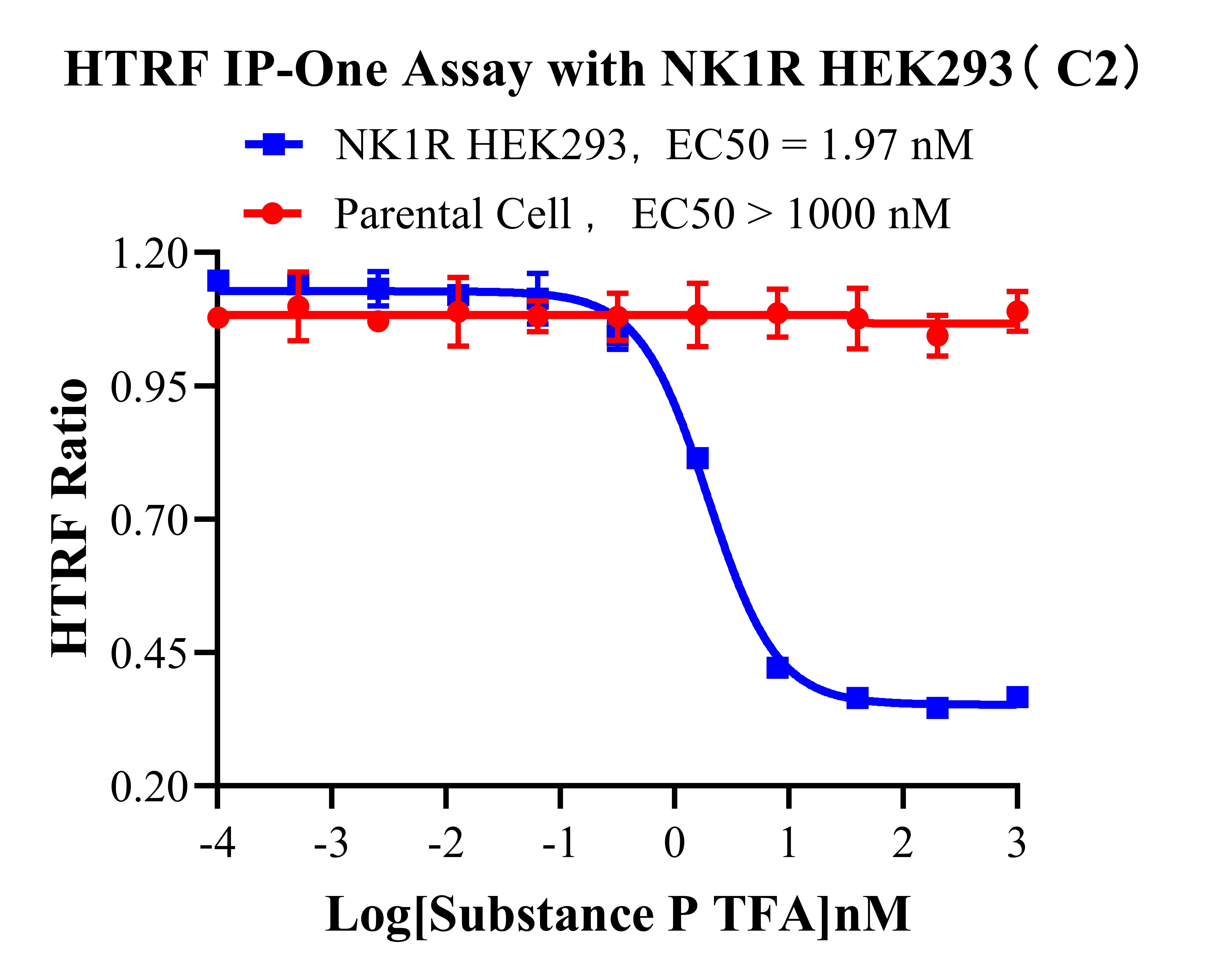 NK1R HEK293 細(xì)胞藥靶模型很好的模擬了體內(nèi) NK1R 的信號(hào)轉(zhuǎn)導(dǎo)過程,原理見下圖所示。