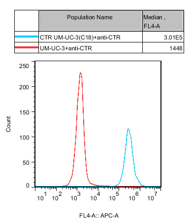 CTR UM-UC-3 細胞藥靶模型很好的模擬了體內(nèi) CTR 的信號轉(zhuǎn)導過程,原理見下圖所示。![]() Figure 1. CTR UM-UC-3 細胞模型原理圖 |