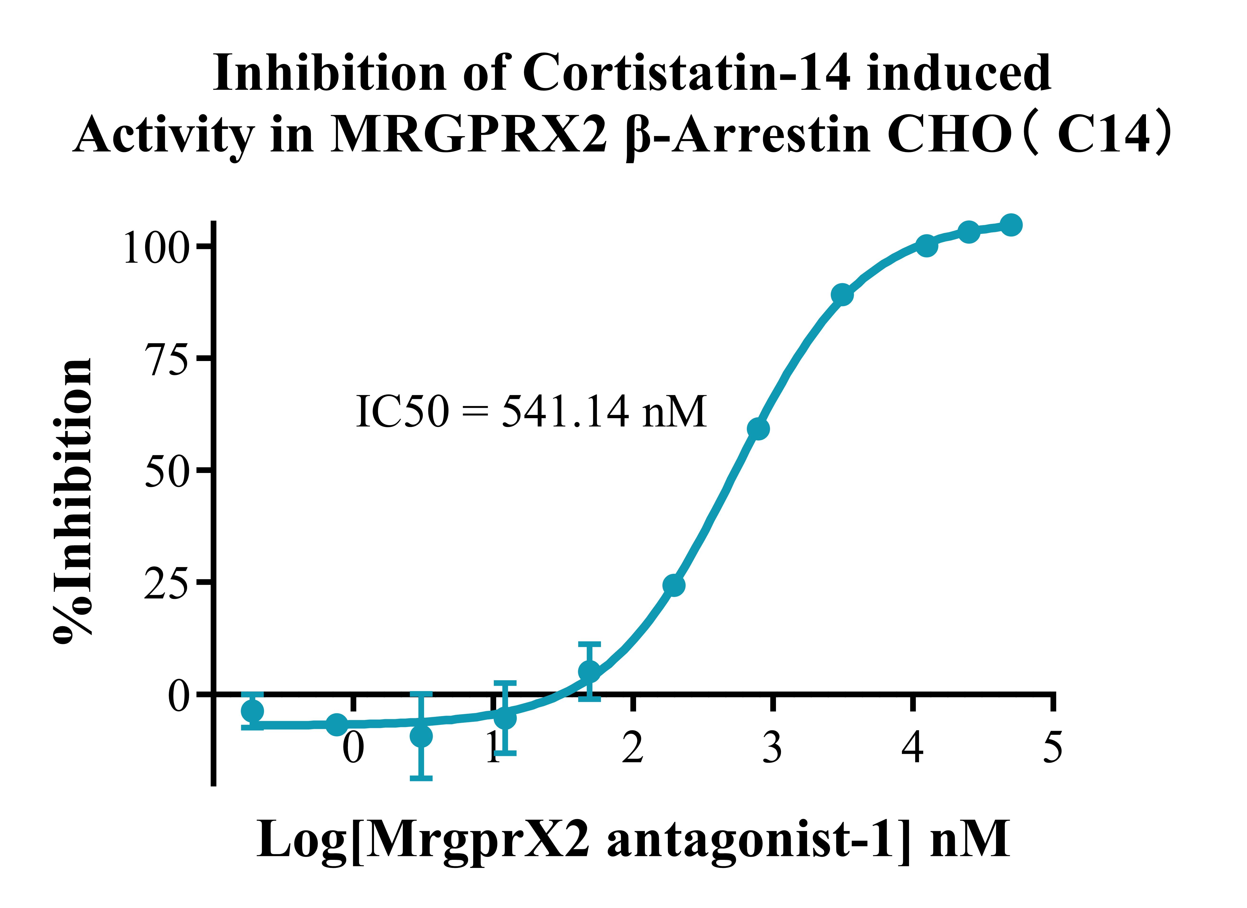 V. Representative Data![]() Figure 2. Recombinant MRGPRX2 β-Arrestin CHO stably expressing MRGPRX2. ![]() Figure 3. Dose Response of Agonists in MRGPRX2 β-Arrestin CHO(C14) . ![]() Figure 4. Inhibition of Cortistatin-14 induced Activity in MRGPRX2 β-Arrestin CHO(C14). |