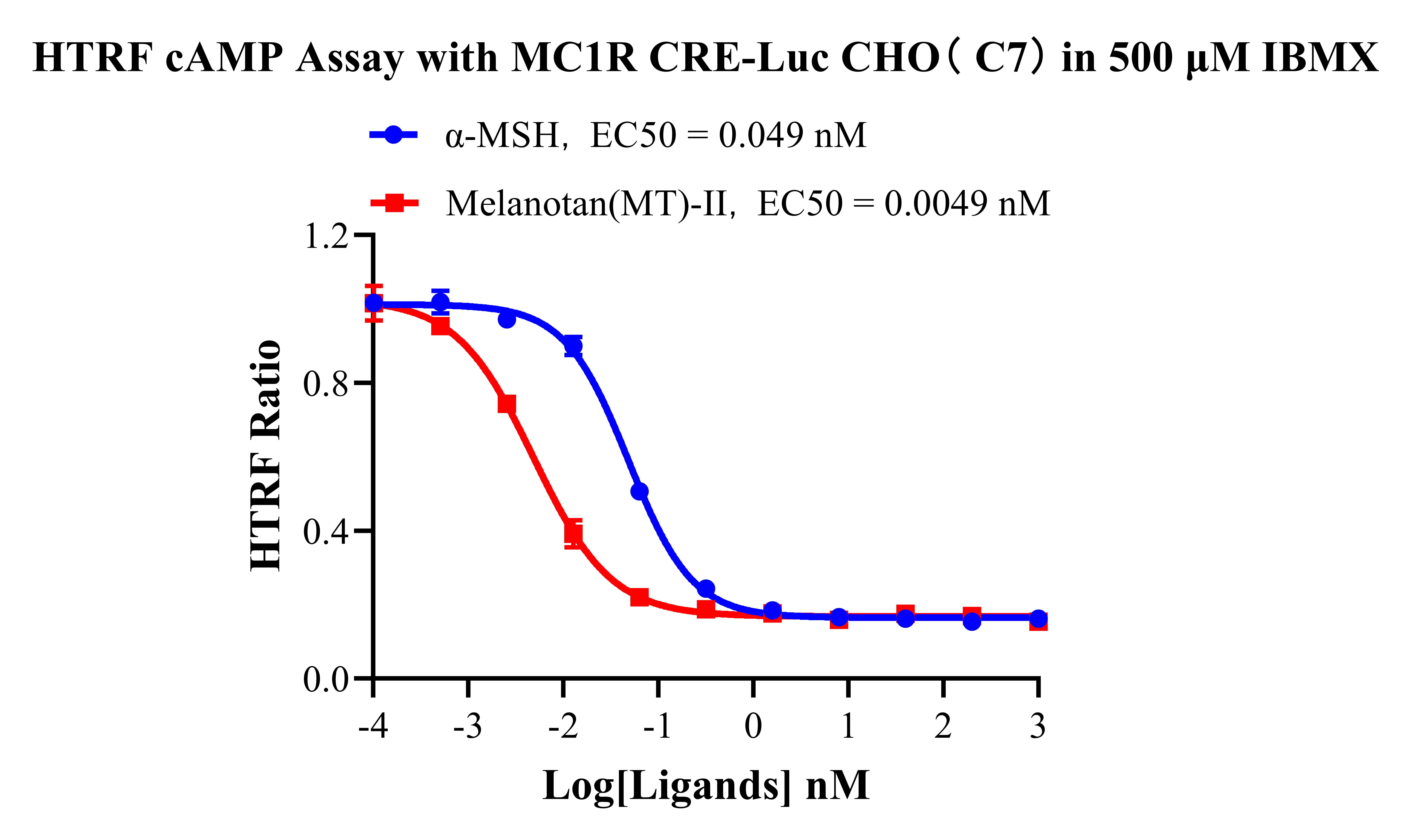 MC1R CRE-Luc CHO 細(xì)胞藥靶模型很好的模擬了體內(nèi) MC1R 的信號(hào)轉(zhuǎn)導(dǎo)過程。 |