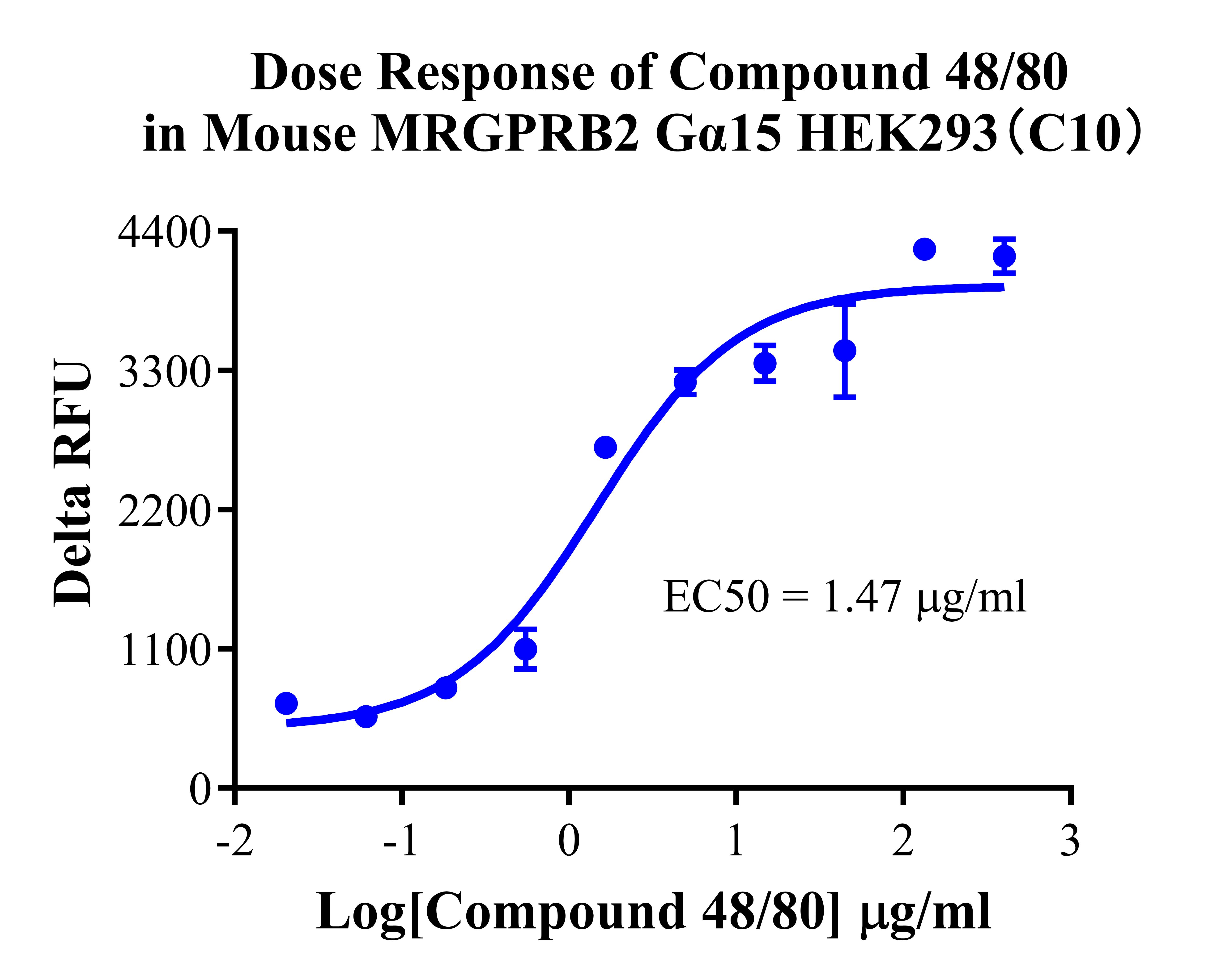 Figure 2. Dose Response of Compound 48/80 in Mouse MRGPRB2 Gα15 HEK293(C10). |