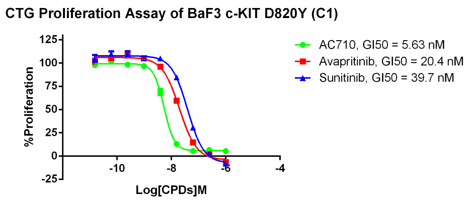 3. Anti-proliferation assay Figure 3. CTG Proliferation Assay of BaF3 c-KIT D820Y (C1). |