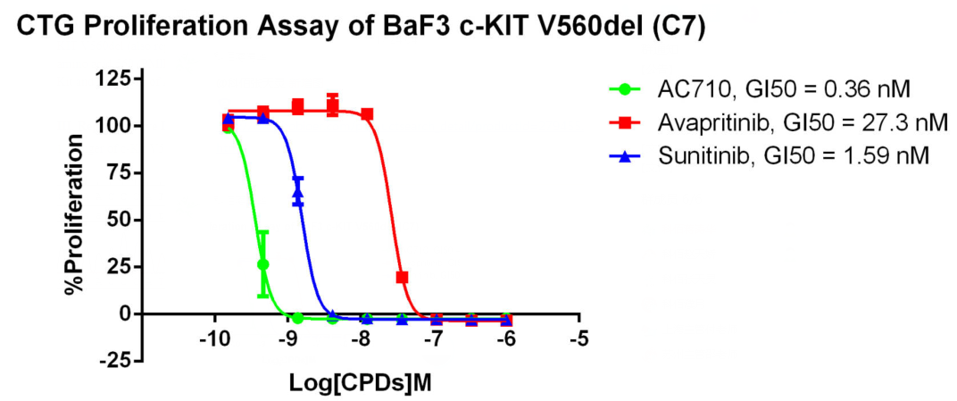 3. Anti-proliferation assay Figure 3. CTG Proliferation Assay of BaF3 c-KIT V560del (C7). |