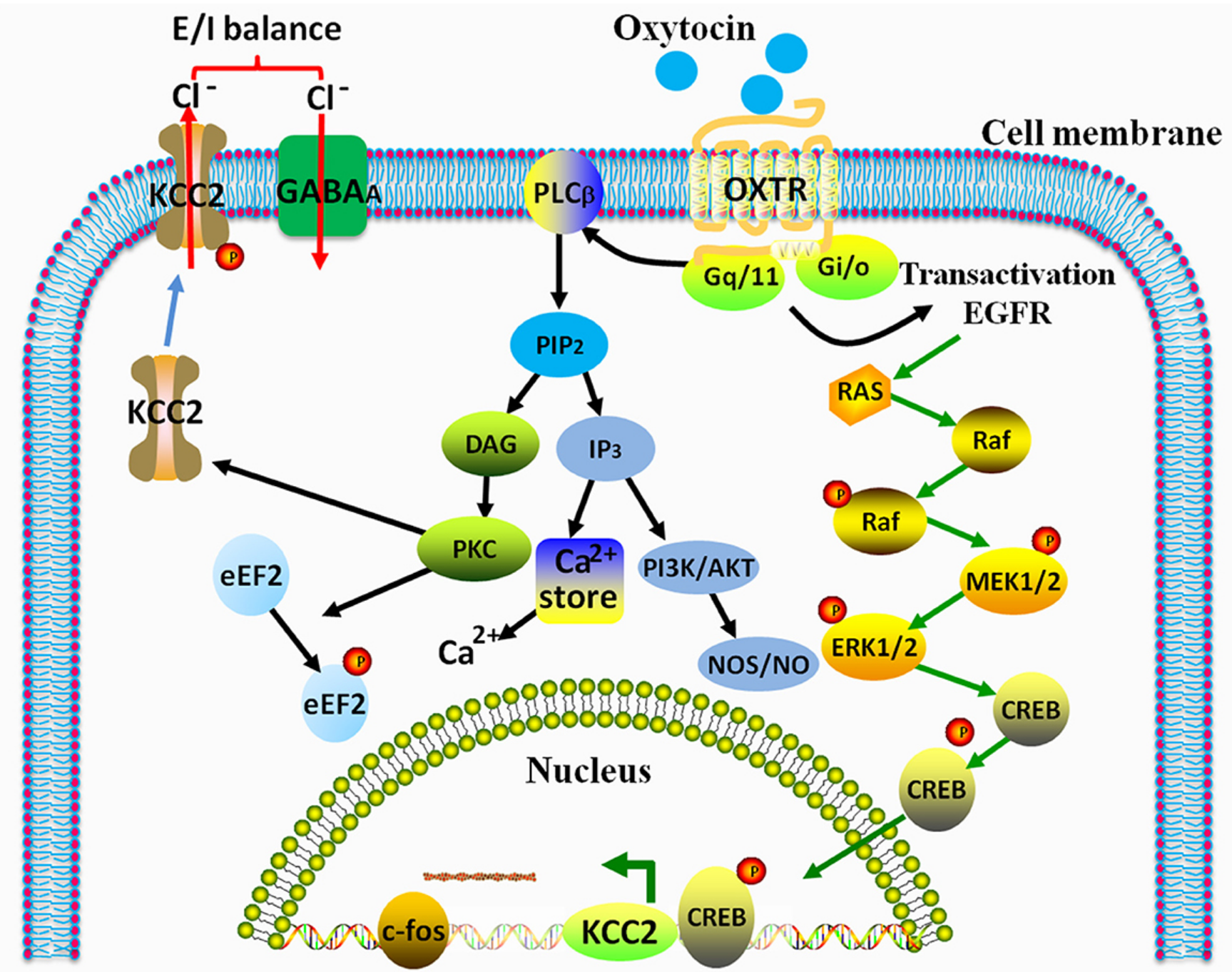 催產(chǎn)素(OXT)是大腦中由下丘腦室旁核(PVN)和視上核(SON)產(chǎn)生的神經(jīng)肽,主要作為外周系統(tǒng)中的激素,可促進母乳喂養(yǎng)時的乳汁分泌,調(diào)節(jié)分娩時的子宮收縮,緩解疼痛和促進分娩過程,促進傷口愈合。此外,中樞神經(jīng)系統(tǒng)(CNS)中的 OXT 系統(tǒng)在社會認可、社交行為、焦慮相關(guān)行為和自主神經(jīng)功能中起著重要作用,例如母體行為、攻擊性、交配、依戀和性行為。除了促社會效應外,OXT 還被確定為大腦中重要的抗應激和抗焦慮因子,通過其靶受體(催產(chǎn)素受體,OXTR)激活細胞內(nèi) MEK/ERK 信號傳導。