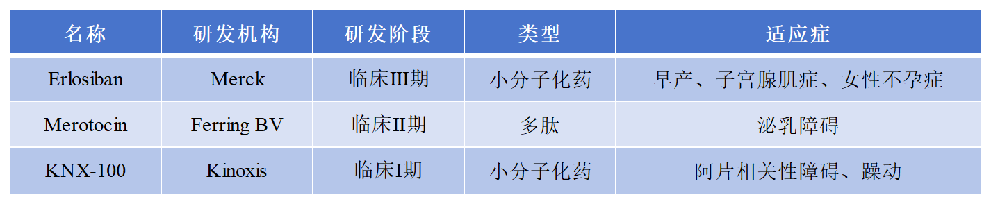 目前,針對OXT/OXTR靶點的藥物布局較少,藥物布局如下: