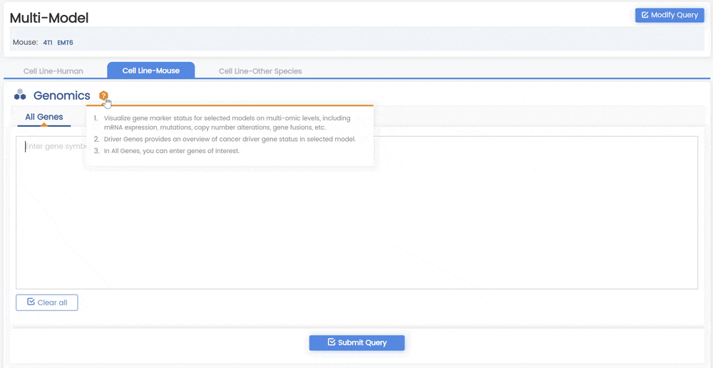 便捷訪問:該平臺配備用戶友好的搜索功能,使研究人員能夠根據(jù)癌癥類型、突變狀態(tài)或藥物反應等特定標準快速識別相關(guān)腫瘤模型。