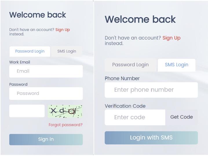 3. 您可選擇使用密碼或手機號碼登錄