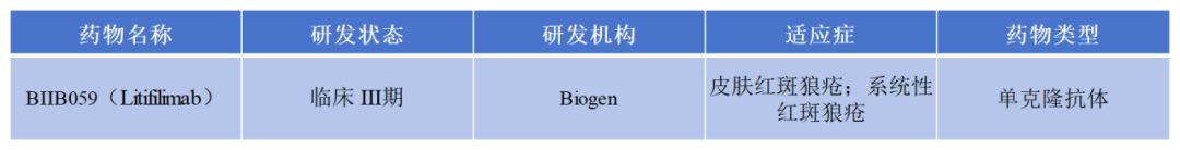 目前,全球關(guān)于BDCA-2這個靶點的在研管線并沒有很多,進展最快的是渤健生物開發(fā)的BDCA-2單抗BIIB059(Litifilimab),通過抑制BDCA-2,減少IFN-I等炎性細胞因子的產(chǎn)生,從而達到治療紅斑狼瘡的目的。
